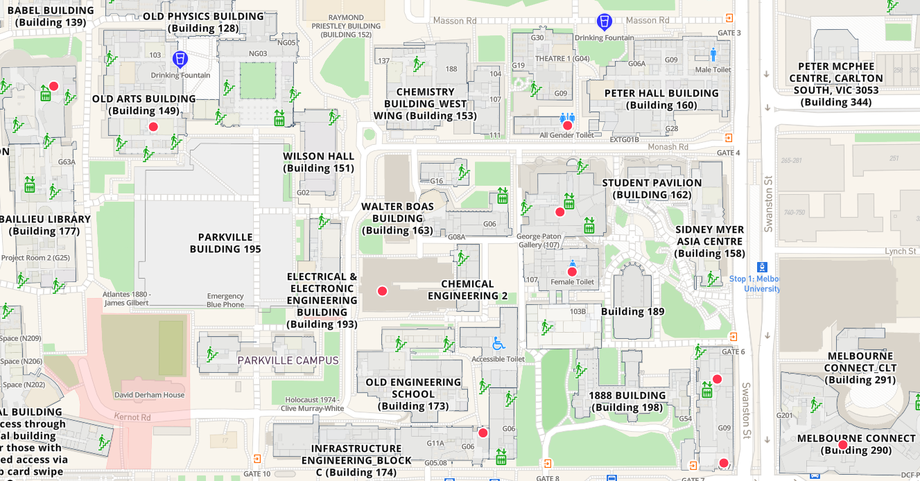 These maps show the layout of the University of Melbourne buildings and are available on the official website.